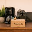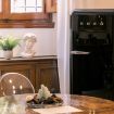 -zona living composta da cucina in legno su misura con lavabo,lavastoviglie, piastra ad induzione, forno a microonde, macchina per il caffè Nespresso, tostapane, bollitore, frigo Smeg ampio tavolo con sedie per gustare colazioni, pranzi o cene, Smart TV con accesso a Netflix, pentole, padelle, stoviglie, posate e utensili vari.