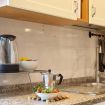 - Cucina completa di tutto: frigorifero, freezer, forno, lavastoviglie, bollitore per l’acqua, moka, pentole, padelle, stoviglie, posate e utensili vari. In omaggio, troverete bustine assortite di tè e tisane, caffè e bustine di zucchero. Dalla cucina si accede alla veranda in cui si trova la lavatrice.