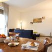 - Ampio ingresso che si affaccia sul soggiorno doppio, caratterizzato da ogni tipo di comfort: area pranzo con un grande tavolo che vi permetterà di gustare colazioni, pranzi, aperitivi e cene in tutta tranquillità; area relax con tv, divani e un grosso pouf che, all’occorrenza, si apre e si trasforma in un letto singolo; aria condizionata; accesso al balcone.