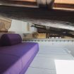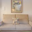 Completa l’appartamento un elegante soppalco in legno con divano letto, ideale per rilassarsi o ospitare altri due ospiti.